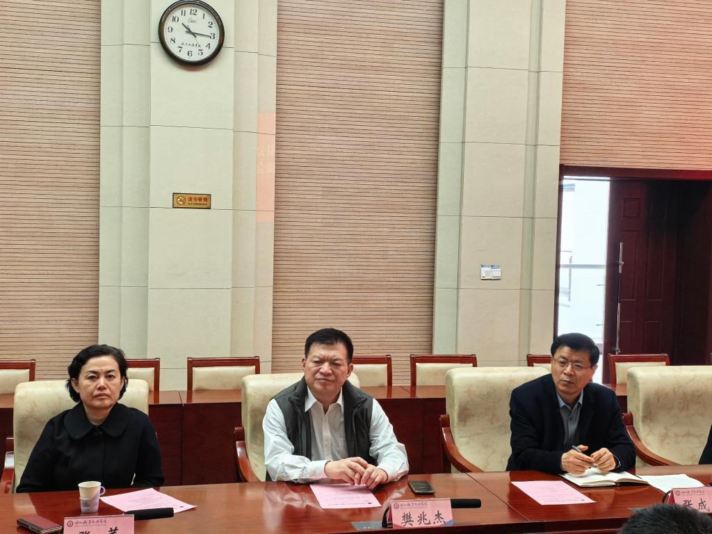 3月25日,上海鲸鱼机器人科技有限公司政府事务部总监张鹏飞一行来BBIN宝盈集团官网考察交流。校党委书记樊兆杰见面交流,市政协副主席、副院长张苹陪同调研并主持座谈会。